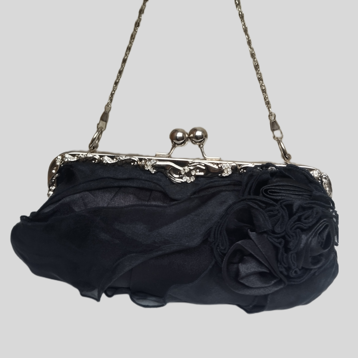 Unlike ordinary purses, the Black Rose Clutch is both functional and fashionable. Equipped with ample space for your essentials, it features an intelligently organized interior to hold your phone, credit cards, keys, makeup, or other necessities. The secure closure system keeps everything safe while maintaining the clutch’s sleek profile. Make it your go-to purse for every occasion without compromising on style or utility.