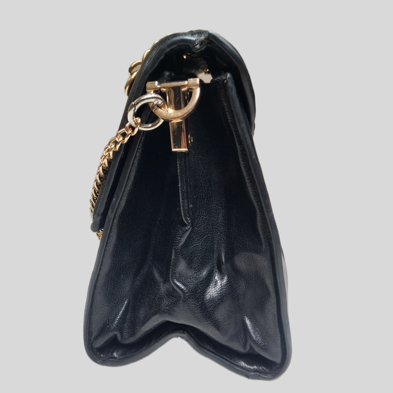 This Mango Black Leather Bag is the ideal size for carrying all your essential items without feeling bulky. Featuring multiple compartments and pockets, it offers organized storage for your phone, wallet, keys, and more. The soft interior lining ensures your belongings stay protected at all times. With its highly adaptable shoulder strap, you can switch between a comfy crossbody wear or elegant handheld placement, making it a suitable choice for any occasion.